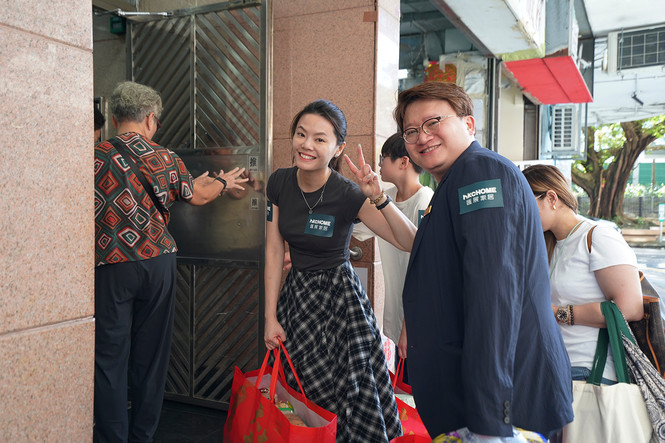 hkcHOME團隊在行政總裁陳煒堅帶領下,走入油尖旺區上門向弱勢社群派發福袋。滿載心意的福袋裡包含米、麵、茶葉以及各種日常用品,由hkcHOME團隊親手送到區內弱勢社群手上。希望這份小小心意,可以為街坊帶來溫暖和支持。